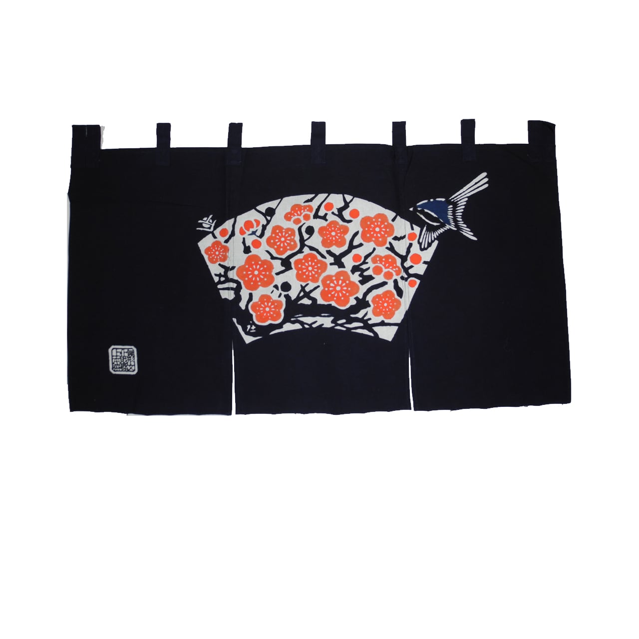 扇面に梅の花を描いた暖簾です。