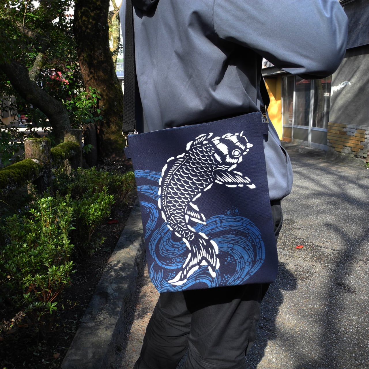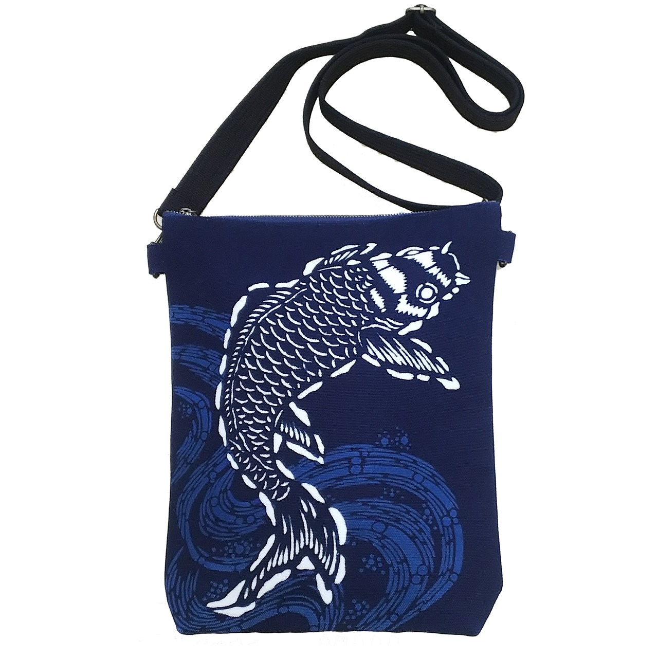 Natural indigo dye shoulder bag"Carp on the waves"