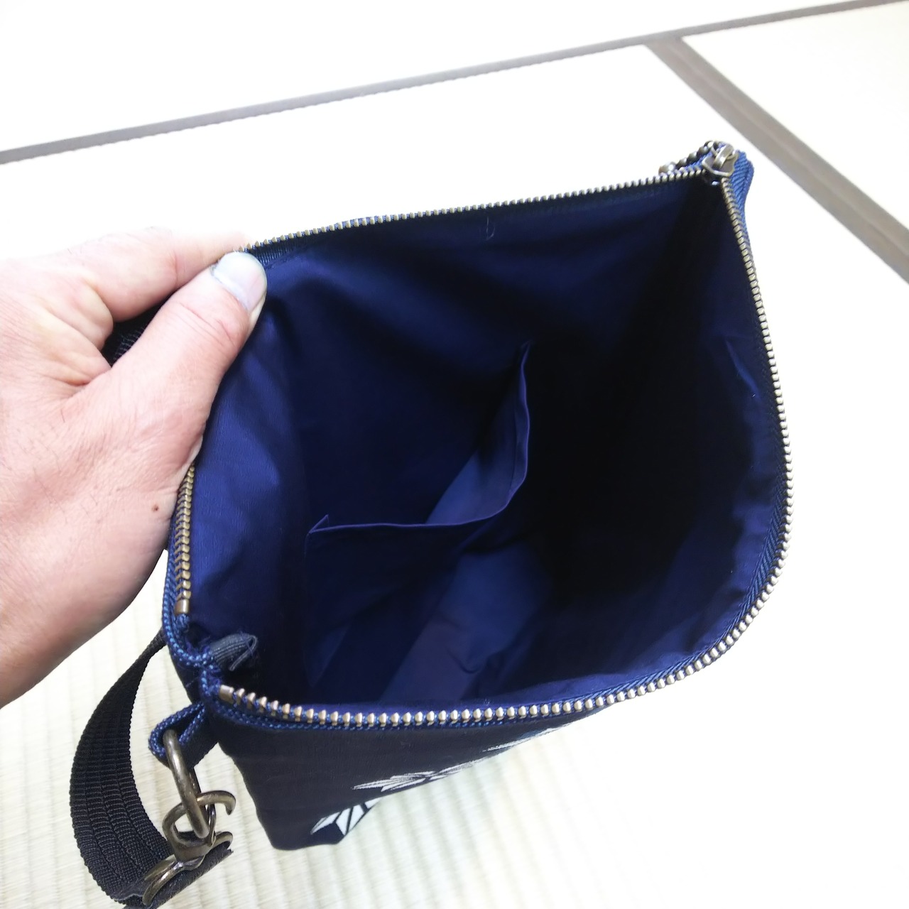 正藍染ショルダーバッグ「波に鯉」