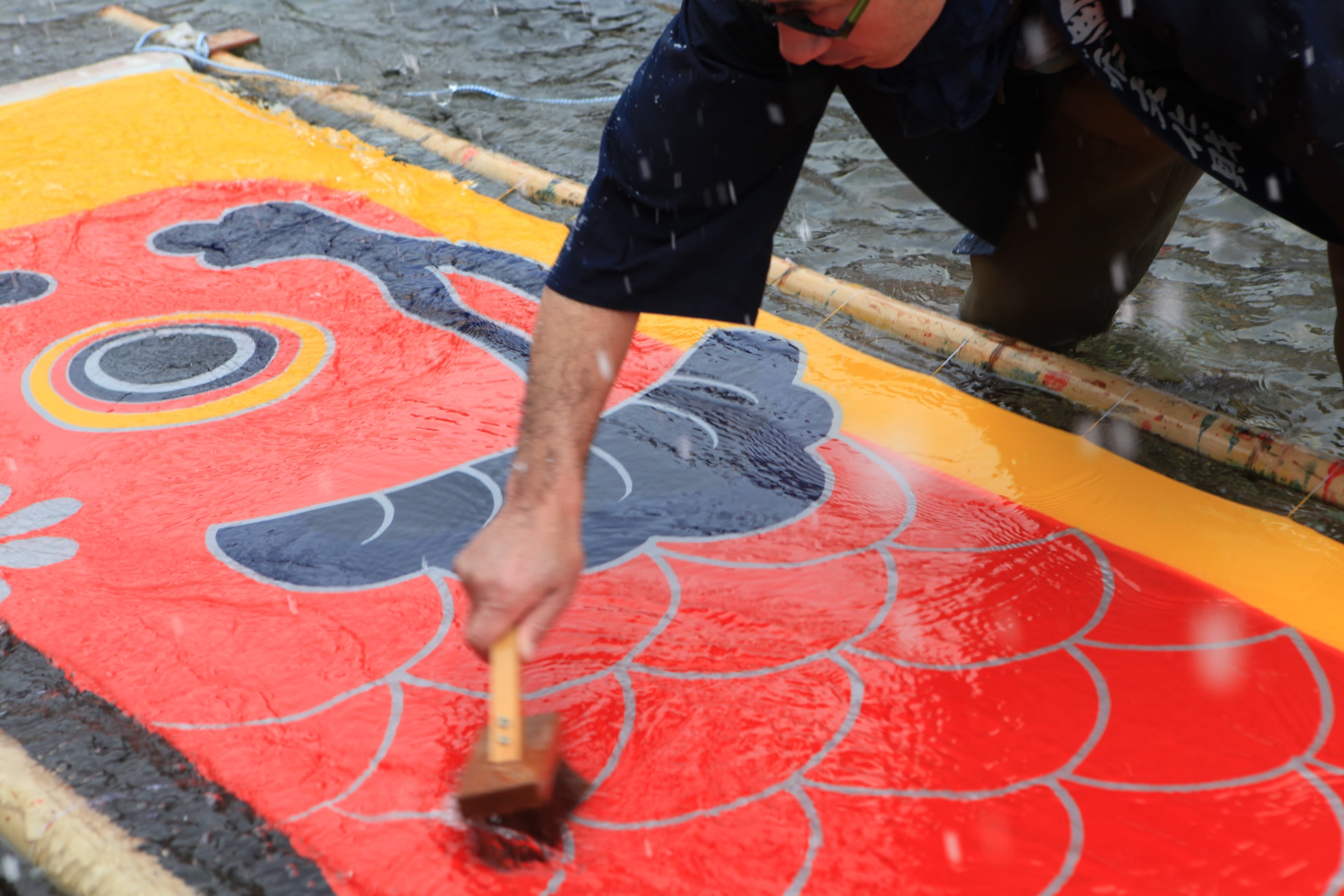 職人たちのブラシの水音が川面に響く